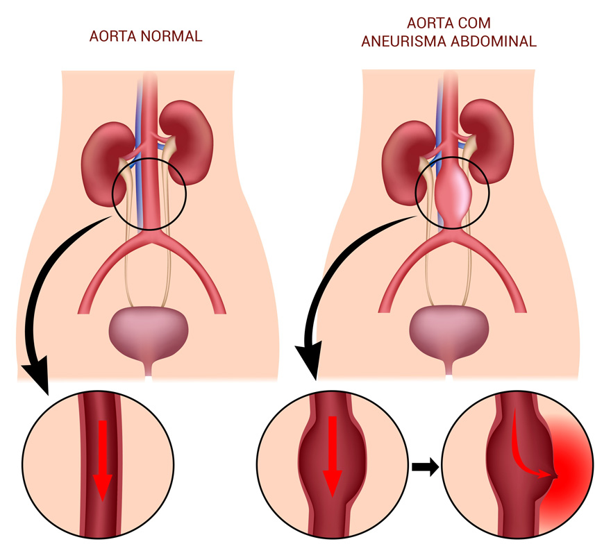 Aneurisma de aorta abdominal é uma dilatação acima de 50% do calibre normal da artéria principal localizada no abdome que transporta sangue proveniente do coração para os diversos órgãos e para os membros inferiores.