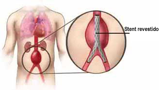 Outra forma de tratamento é através da cirurgia endovascular. A cirurgia endovascular utiliza uma tecnologia de ponta e é considerada menos invasiva que a cirirgia convencional, pois é realizada normalmente com duas incisões nas regiões inguinais (virilhas) e uma prótese é colocada guiado por radioscopia (mesma técnica utilizada para cateterismo).